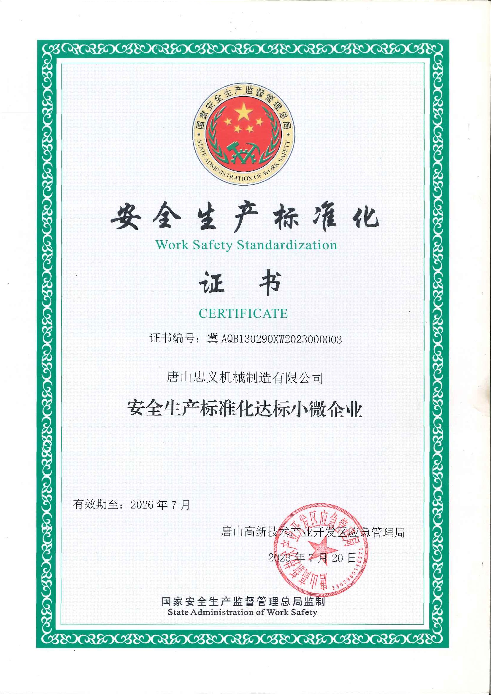 安全生產(chǎn)標(biāo)準(zhǔn)化證書新 發(fā)布時間:2025-08-18 點擊: 260 上一條: ISO9001質(zhì)量體系認(rèn)證 下一條: 建材機械行業(yè)榮譽證書